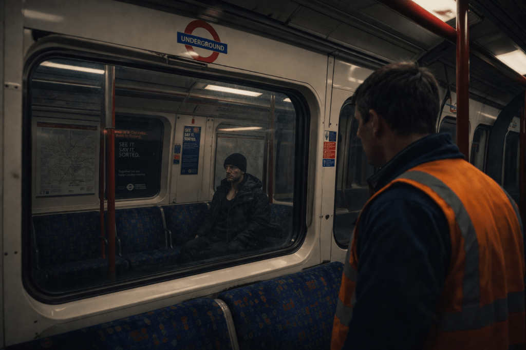 Behind me, the train lurched – not braking, not accelerating. Just a slight misalignment, like it had slipped and corrected itself a fraction too late. I felt it more than heard it. He didn’t react.