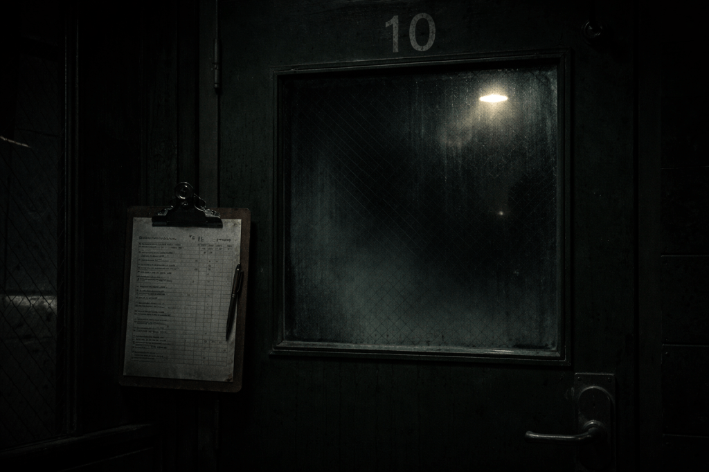 By the time he reached the far end of the corridor, the rhythm had taken him. Walk. Check. Tick. Move on. The kind of repetition that let the mind drift without quite letting go.